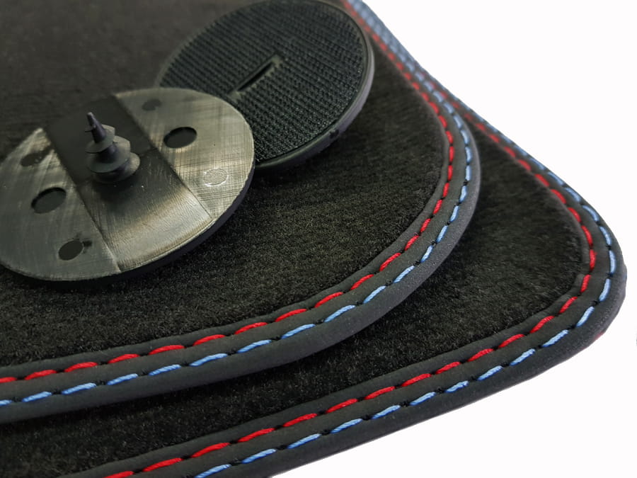 Dywaniki obszyte lamówką i wykończone podwójną nitką kolorze czerwonym i niebieskim