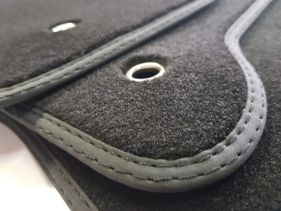 Dywaniki obszyte lamówką wykończone podwójnym ściegiem w kolorze czarnym