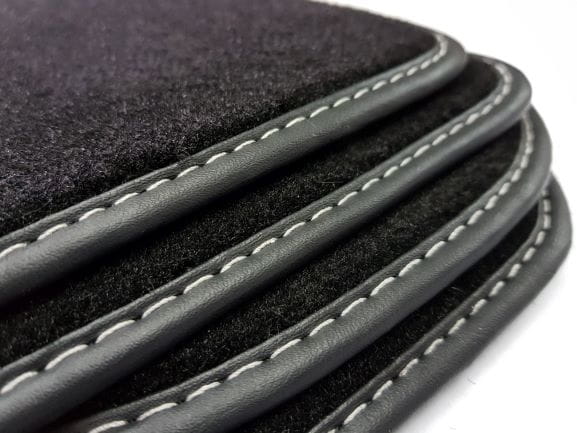 Dywaniki obszyte lamówką wykończone ściegiem w kolorze srebrnym