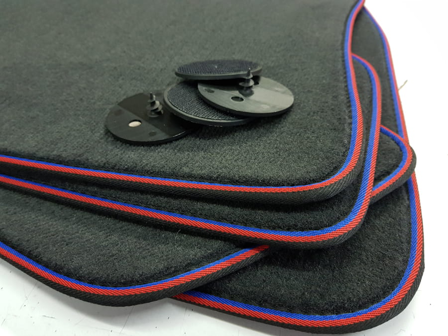 Dywaniki obszyte lamówką w kolorach czerwonym i niebieskim