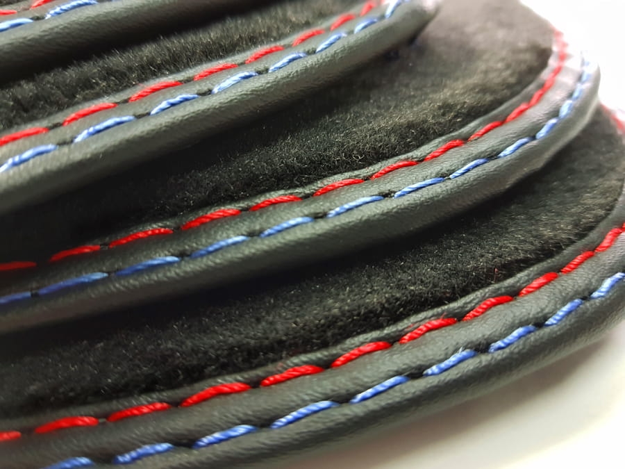 Dywaniki obszyte lamówką i wykończone podwójną nitką kolorze czerwonym i niebieskim