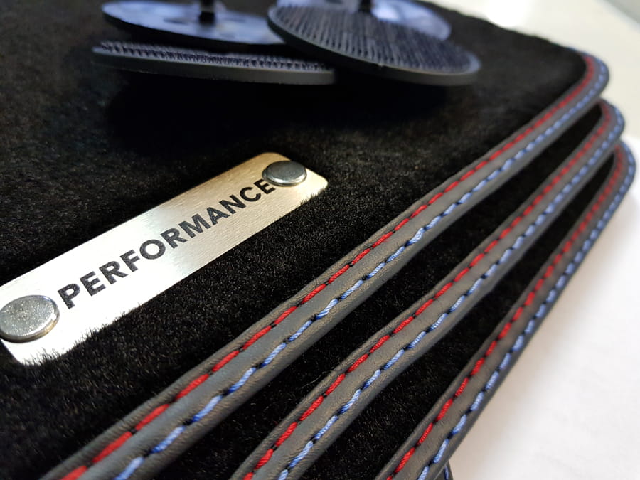 2 Loga metalowe PERFORMANCE na dywaniku kierowcy i pasażera