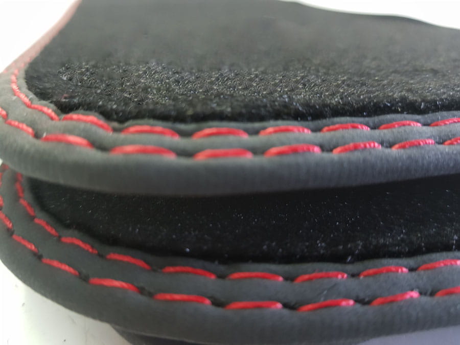 Dywaniki obszyte lamówką i wykończone podwójnym ściegiem w kolorze czerwonym