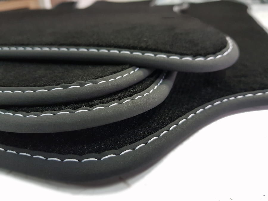 Dywaniki obszyte lamówką i wykończone ściegiem w kolorze srebrnym