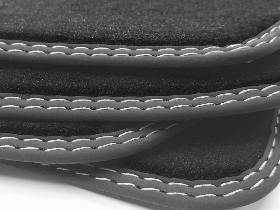 Dywaniki obszyte lamówką i wykończone ściegiem podwójnym w kolorze srebrnym.