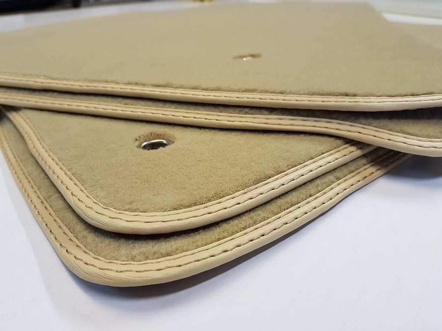 Dywaniki obszyte lamówką i wykończone ściegiem w kolorze beżowym