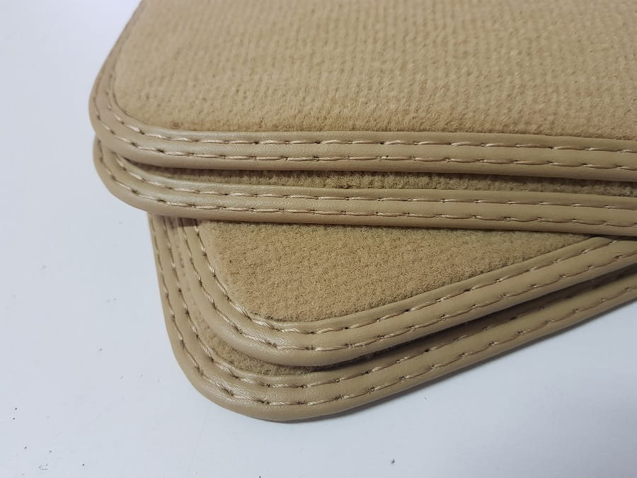 Dywaniki obszyte lamówką i wykończone podwójnym ściegiem w kolorze beżowym