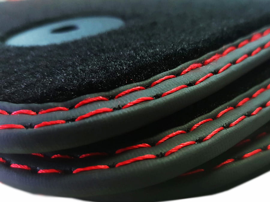 Dywaniki obszyte lamówką wykończone podwójnym ściegiem w czerwonym kolorze
