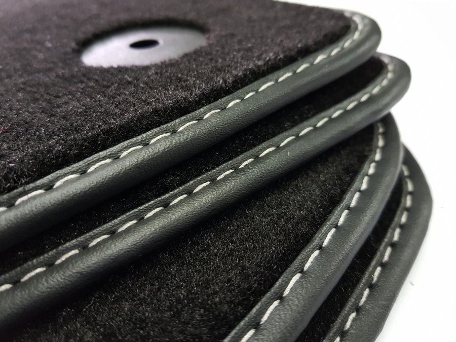 Dywaniki obszyte lamówką i wykończone ściegiem w kolorze srebrnym