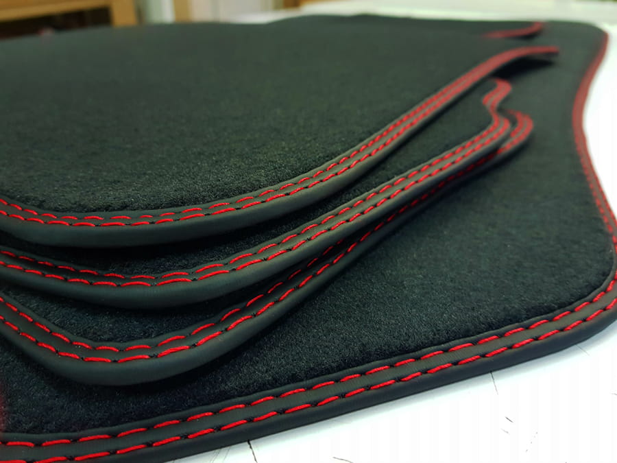 Dywaniki obszyte lamówką i wykończone podwójną nitką w kolorze czerwonym