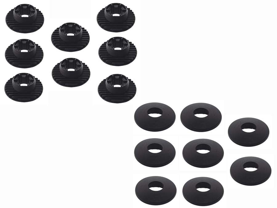 Dywaniki obszyte są lamówką i wykończone w kolorze czerwonym i srebrnym