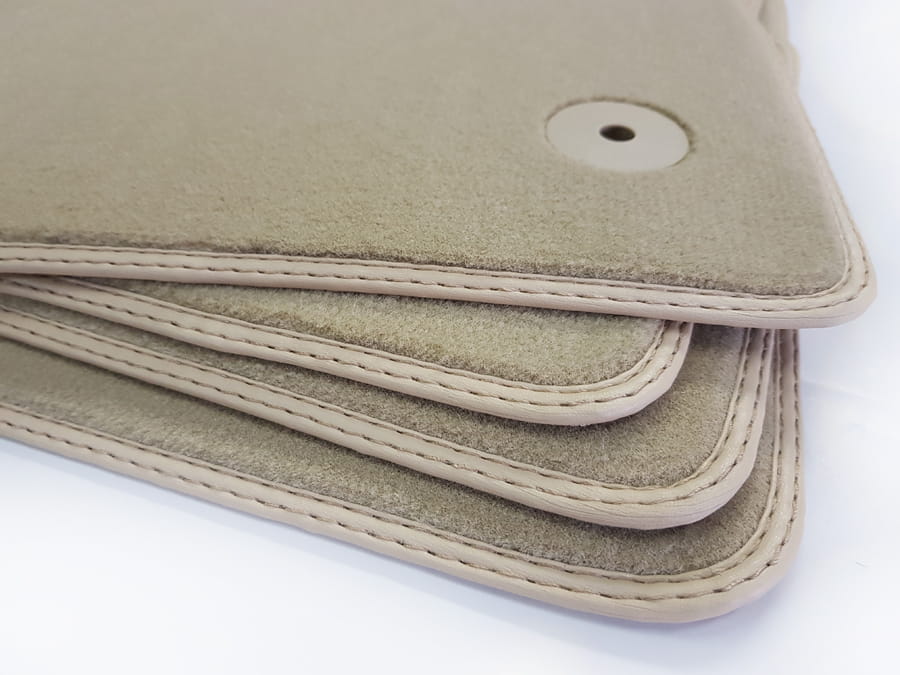 Dywaniki obszyte lamówką i wykończone podwójnym ściegiem w kolorze beżowym