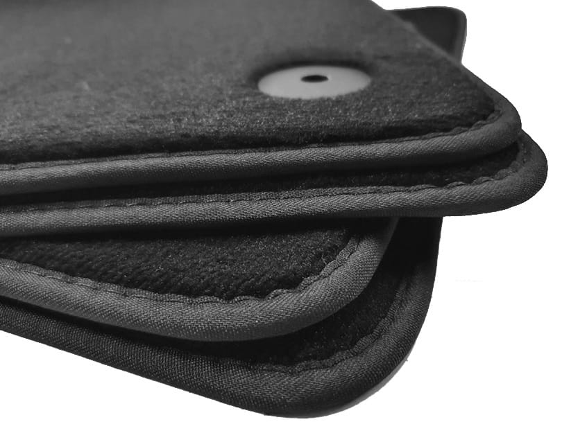 Dywaniki obszyte lamówką wykończone ściegiem w kolorze czarnym.