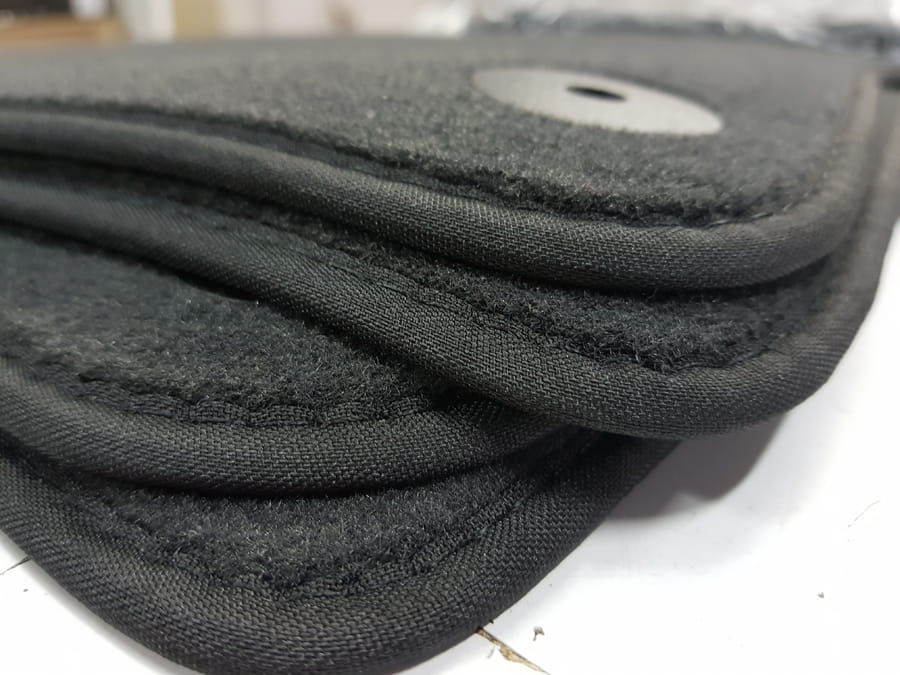 Dywaniki obszyte lamówką i wykończone ściegiem w kolorze czarnym