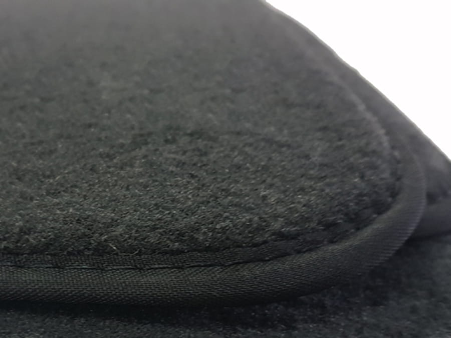 Dywaniki obszyte lamówką i wykończone ściegiem w kolorze grafitowym.