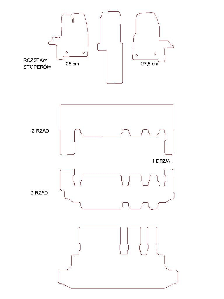 1+2+3 rząd + mata bagażnika 8- os. 2013 - 2017