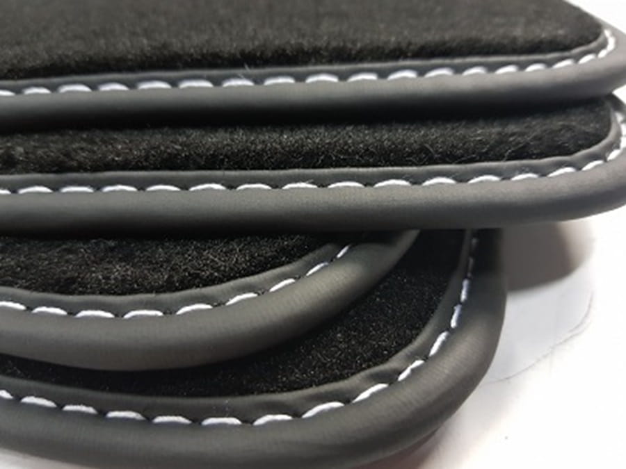 Dywaniki obszyte lamówką wykończone ściegiem w kolorze srebrnym