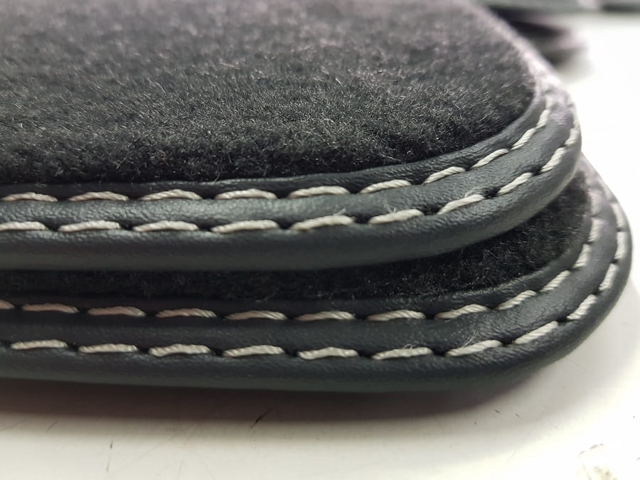 Dywaniki obszyte są lamówką i wykończone podwójną nitką w kolorze srebrnym