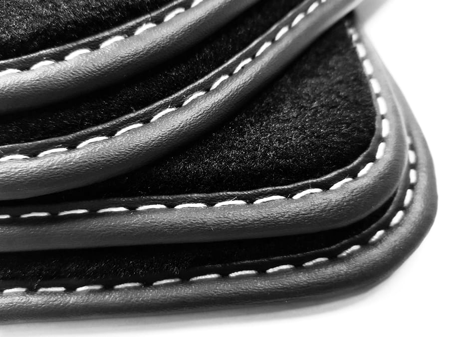 Dywaniki obszyte lamówką i wykończone ściegiem w kolorze srebrnym