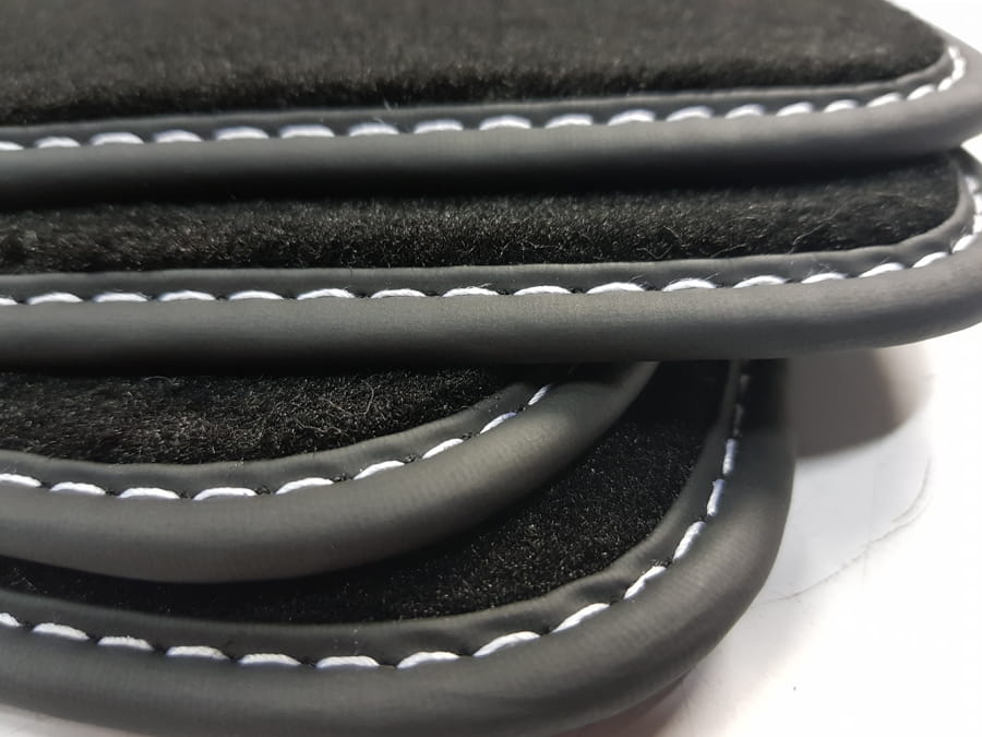 - Dywaniki obszyte są czarną lamówką i wykończone ozdobnym ściegiem w kolorze srebrnym