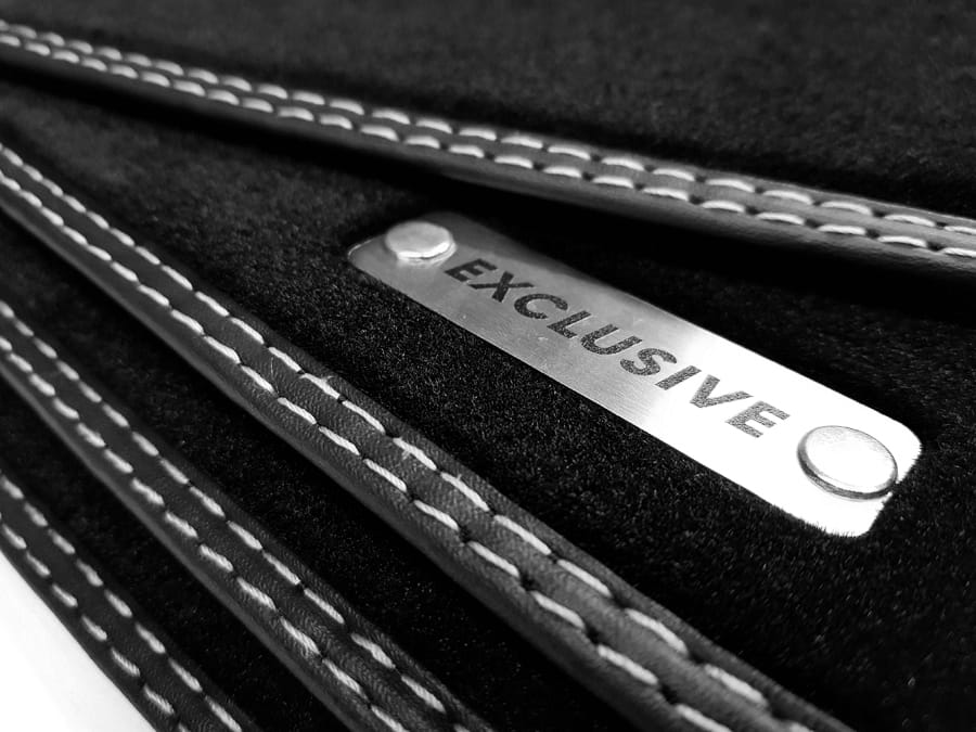 Dywaniki obszyte lamówką i wykończone ściegiem w kolorze srebrnym