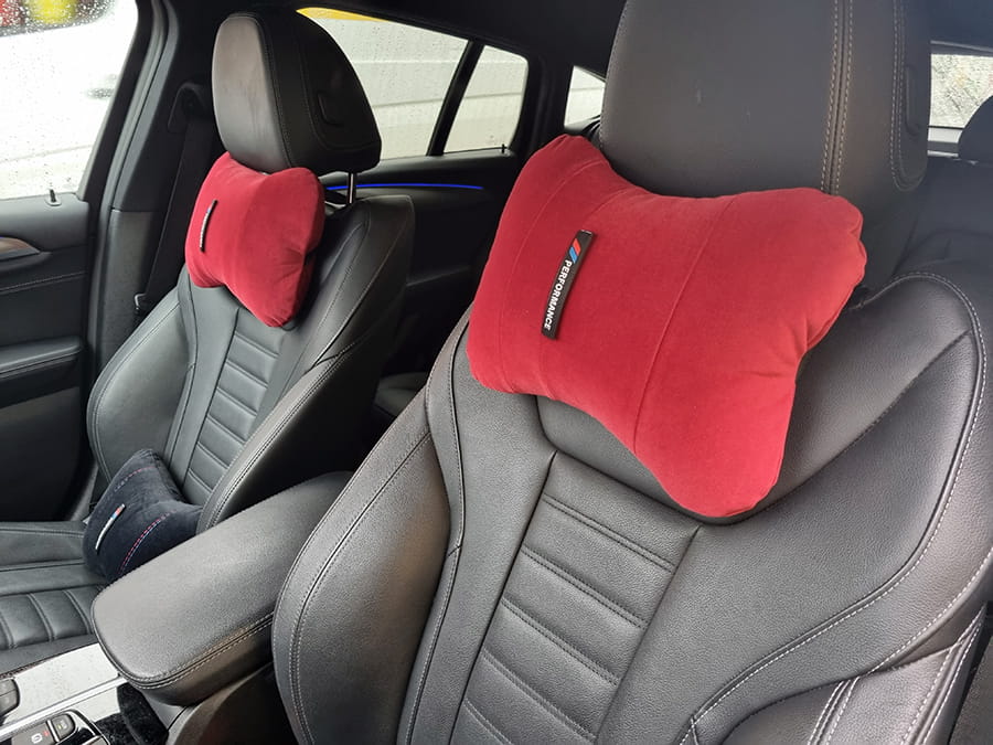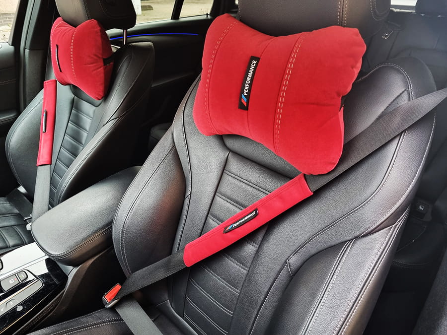Zagłówki na fotel pod głowę , poduszki do samochodu z podwójną nitką logo Performance + opaski na pasy